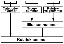 De opbouw van een elementnummer en een rubrieknummer kan als volgt worden weergegeven: